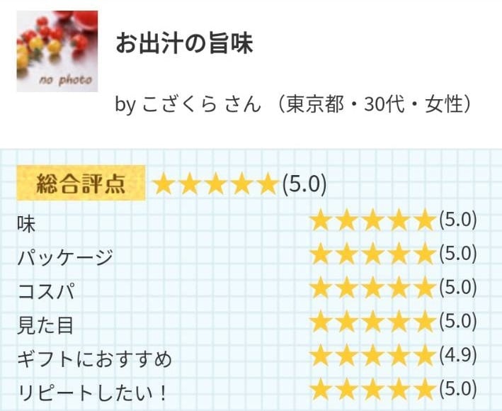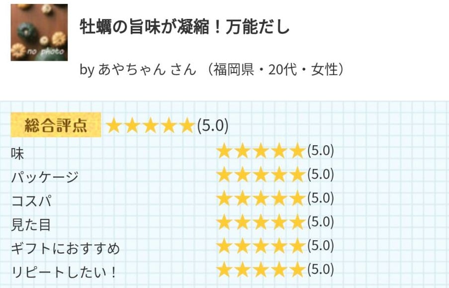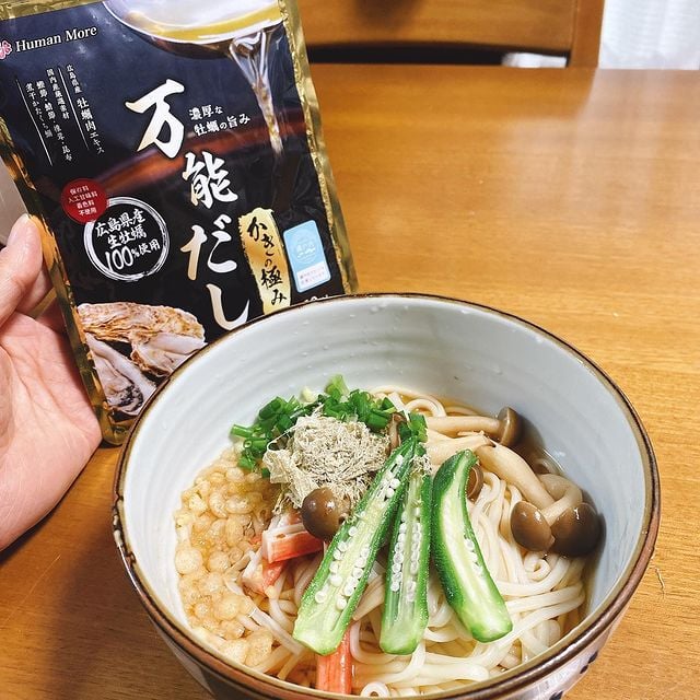| 原材料名 | 食塩、砂糖、風味原料(鰹節粉末、かき肉エキスパウダー、鯖節粉末、椎茸粉末、昆布粒、煮干かたくち鰯粉末)、でん粉分解物、鰹だし顆粒、粉末醤油、食用植物油脂/調味料(アミノ酸等)、乳酸カルシウム、(一部に小麦・さば・大豆を含む) |