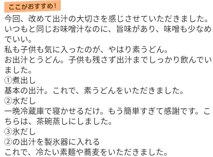 ・だしパックを破ってのご使用の際には、稀に小骨が混入している事がありますので、ご注意ください。